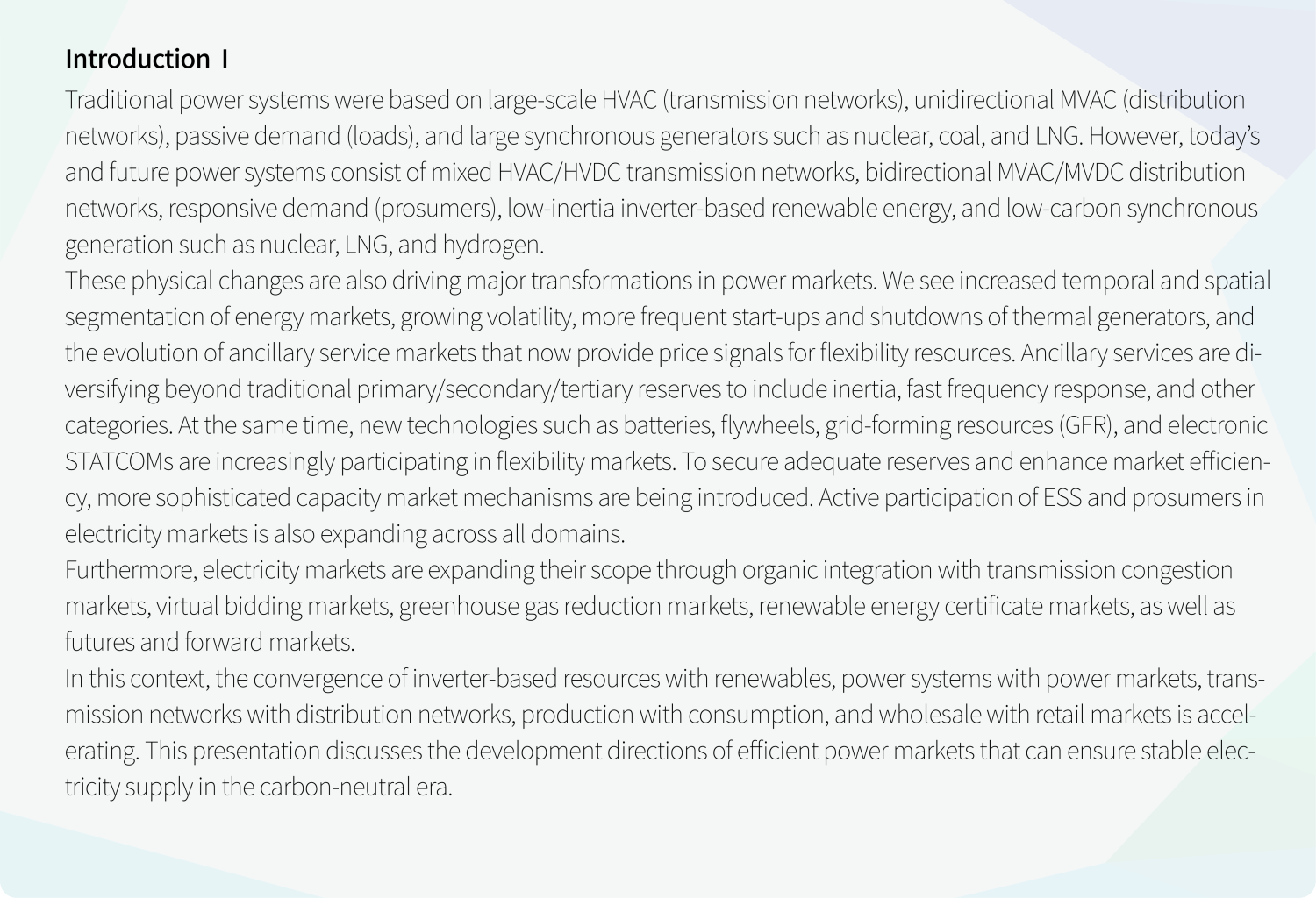 Abstract: ive a presentation on the key challenges facing Korea's power grid and Korea Electric Power Corporation(KEPCO)'s strategies under the theme "The Era of Electricity: Clean Energy and a Stable Power Future. The main challenges include the increase in peak demand and renewable energy, regional imbalances between power supply and demand, the increasing curtailment of renewable energy, and constraints in power grid construction. The key strategies are grid optimization, timely grid construction, and maximizing the utilization of existing facilities. |